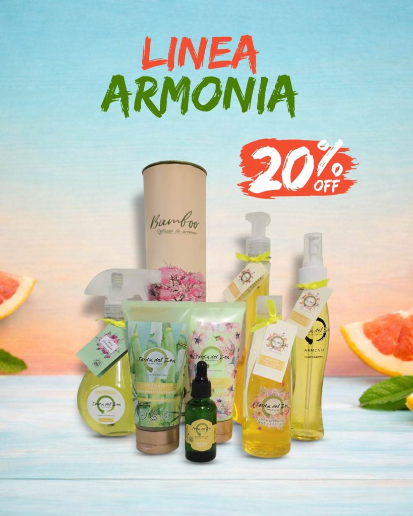 ¡Disfruta de un 20% de descuento en toda nuestra Línea Armonía! Incluye exfoliantes, cremas, aceites para masajes, burbujas, fragancias, sprays aromatizadores ¡y mucho más! Lleva bienestar a tu día con nuestras ofertas especiales.